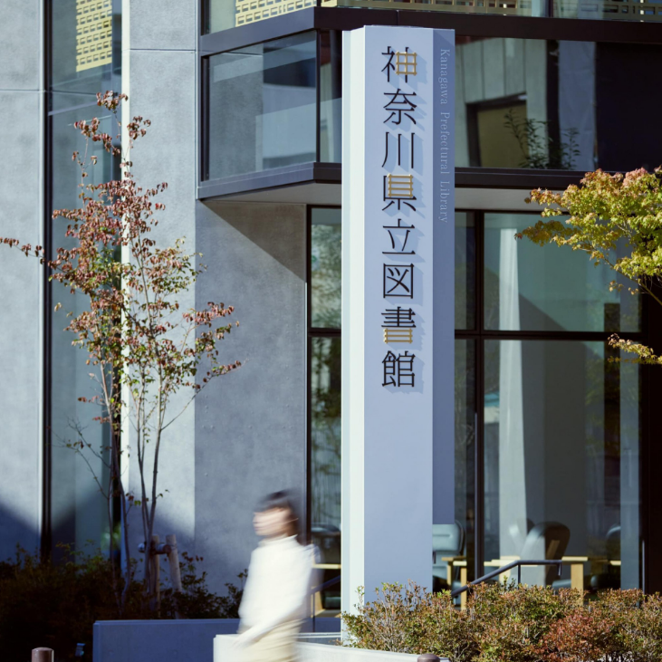 神奈川县立图书馆设立于1954年,本馆设立于横滨,1958年则又设立了川崎分馆。图书馆本馆建筑是由前川国男所设计,“空心砖”图案为此建筑最大的特色。2020年神奈川县立图书馆开始修建新馆,并于今年9月1日正式竣工对外开放,也同时启用了木住野彰悟所操刀的全新视觉识别。